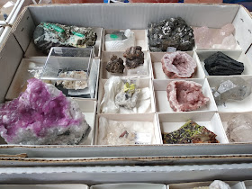 Piezas varias en el puesto de Juan Morillo, muchas de Vizcaya aunque buscando en las cajas con calma se puede encontrar casi de todo. Su puesto como poco resume la mineralogía de los últimos 30 años en la zona norte y Extremadura.